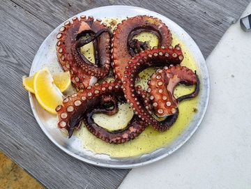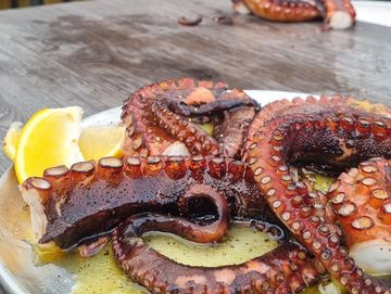 Remember- the octopus is already cooked, you are just applying the flavor of the grill, and so the grilling will be very quick, Basically, cook the octopus until you have the color you want then remove.